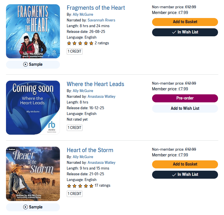 I've also noticed that Where the Heart Leads has had a date change. It was November, but it's now December. Perfect timing for listening to something other than your mother-in-law harp on about how the turkey was dry.