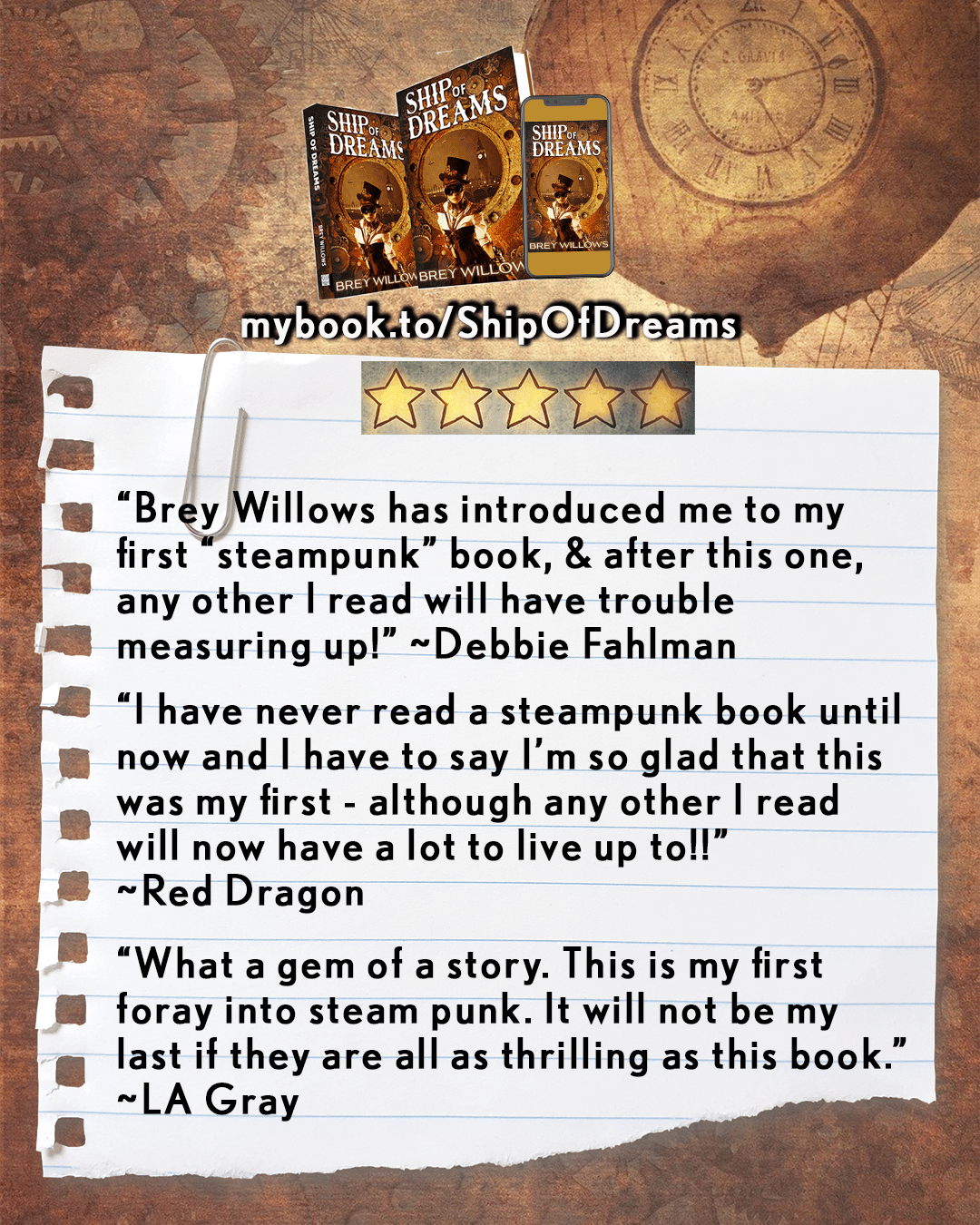 And now, as we're heading toward the 1st of Feb, I'm working my bum off to tell people about Ship of Dreams, my sapphic steampunk romance. I have to say, the ARC reviews have really blown me away. So many readers have said they've never read a steampunk book, and this was a great introduction (see below). The comments have allowed me to think that maybe, just maybe, I'm not too bad at this writing thing.